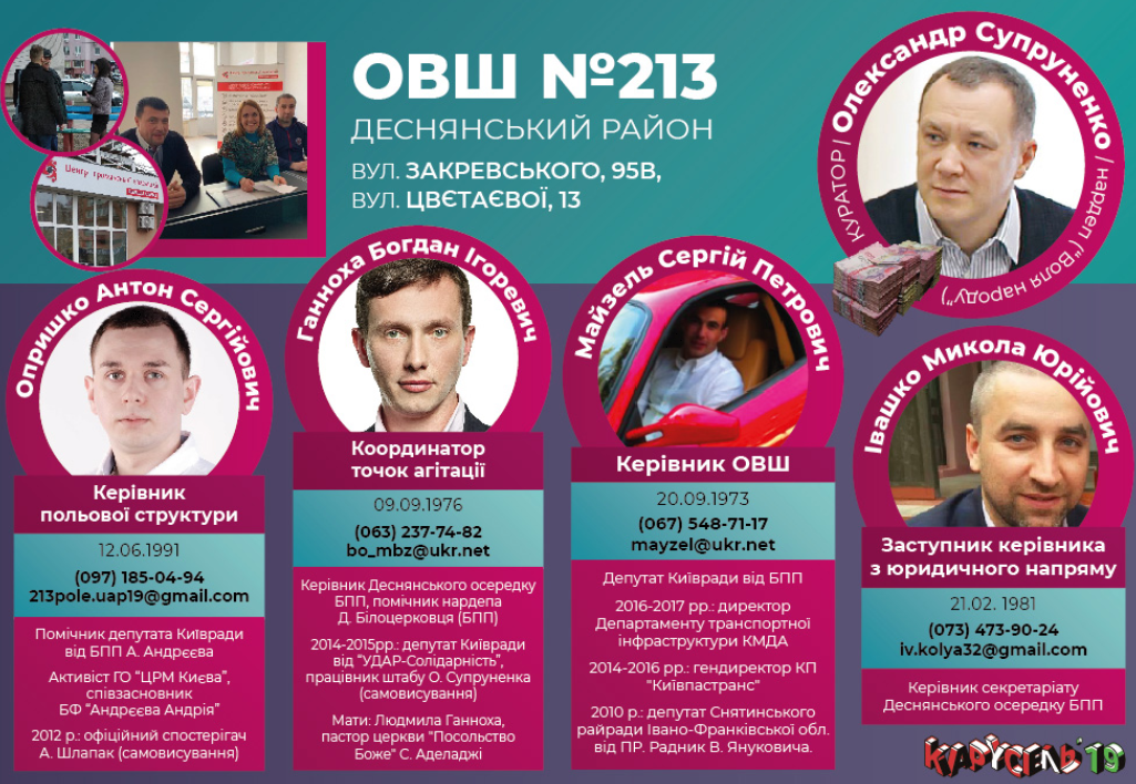 В свою очередь штаб Березенко делает ставку на скупку, так сказать, в частном порядке - формируя структуру непосредственно "в полях". Главным технологом этого проекта является Дмитрий Касьянов, который стал известным благодаря довыборам в Верховную Раду в 2015 году в Чернигове, где он, собственно, и вел кампанию Березенко,во время котрой его обвиняли в скупке голосов избирателей.