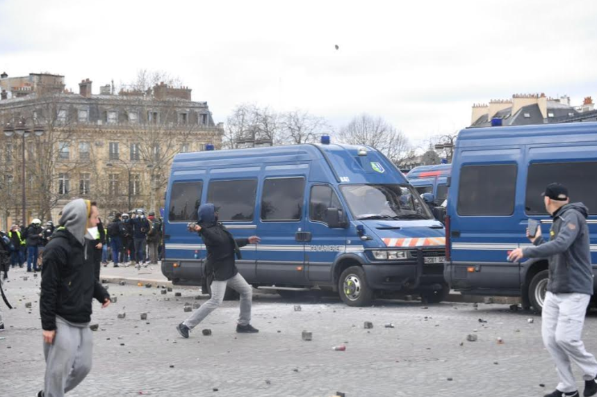 Напомним, что "желтые жилеты" забросали полицию дымовыми шашками. Им ответили водяной пушкой.