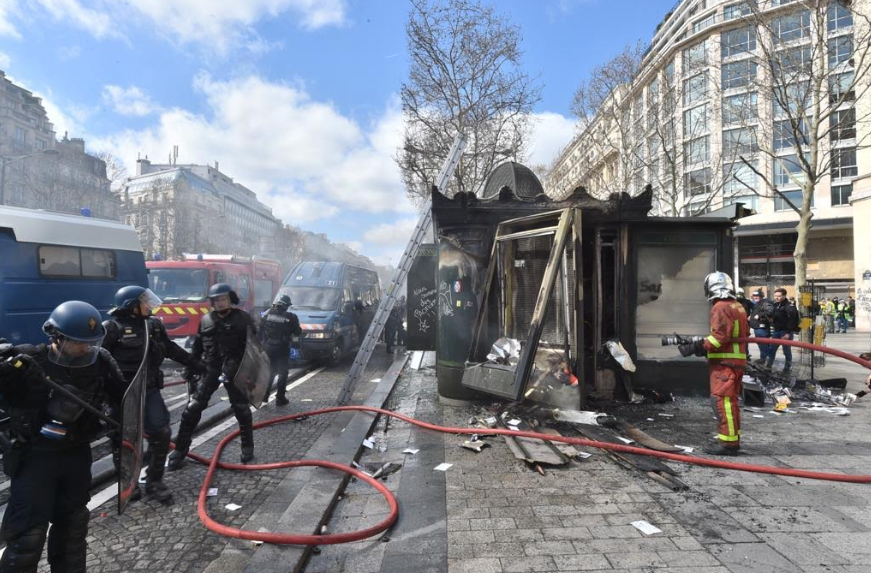 В Париже "желтые жилеты" подожгли банк с людьми внутри. Фото