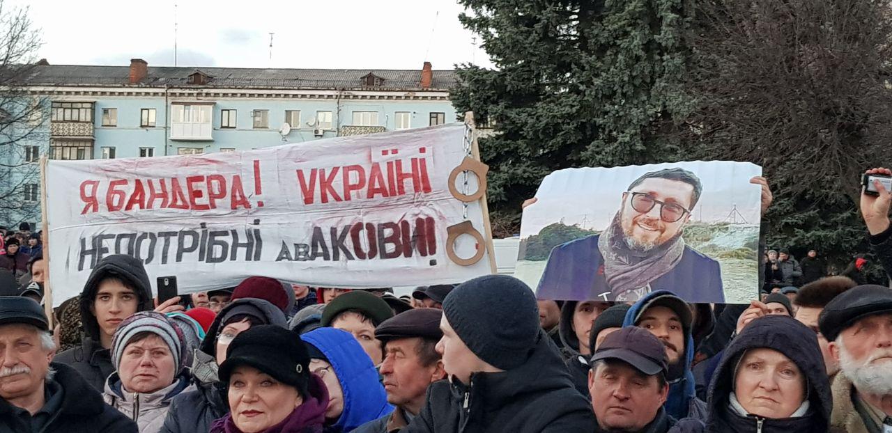 Во время его выступления активисты выкриками спрашивали, где отрубленные руки Свинарчука, почему президент делает бизнес на крови и преследует Анатолия Шария. В толпе говорили, что Порошенко привез с собой титушек, которые вырывают плакаты с критикой президента.