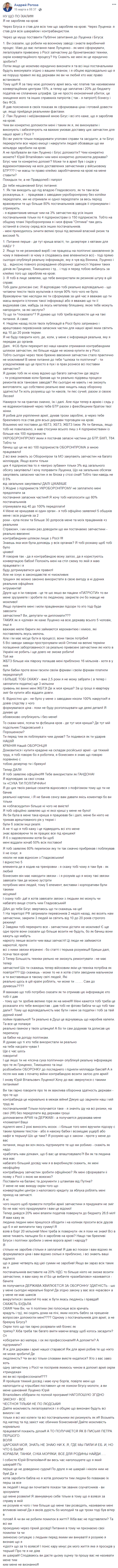 Он подчеркивает, что, несмотря на все обвинения, занимался поставками контрабандных запчастей из России в "Укроборонпром" без предоплаты и его объемы поставок составляли лишь 3% от всех других, "учитывая то, что больше 80% поставщиков ее получали и получают.