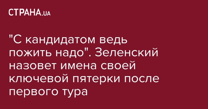 Кандидат в президенты Владимир Зеленский заявил, что ключевую пятерку своей команды он представит уже после первого тура выборов - в случае, если он пройдет во второй. Об этом пишет "Интерфакс-Украина"