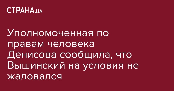 Уполномоченный Верховной Рады по правам человека Людмила Денисова сообщила, что этапированный в Лукьяновское СИЗО руководитель РИА Новости Украина Кирилл Вышинский не предъявлял жалоб к условиям содержания. Накануне адвокат журналиста сообщил, что его подзащитный четыре дня был без электричества и без матраца.