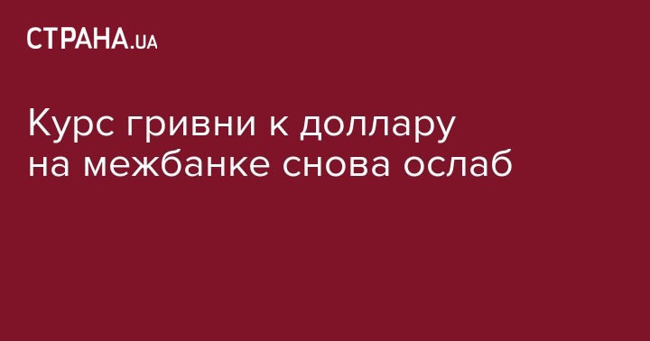 Во вторник, 19 марта, курс гривни на межбанковском валютном рынке упал до 27,265 грн/$1 с 27,135 грн/$1 в предыдущий рабочий день. Об этом сообщили дилеры коммерческих банков, передает "Интерфакс-Украина"