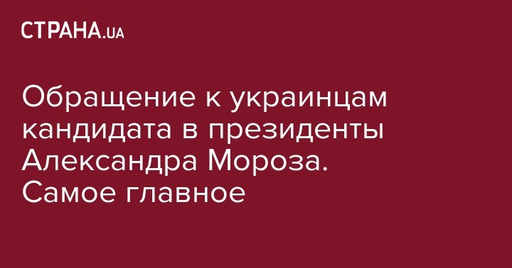 "Уважаемые друзья, актив партии, которая выдвинула меня на пост президента, поручила мне обратиться к вам. Через две недели состоится первый тур выборов. Там будут планироваться фальсификации, подкупы. Также мы имеем засилие уличной рекламы, публикацию социологических опросов. Все это констатирует неравные шансы кандидатов", - начал Мороз.