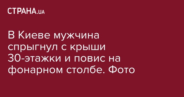 В Киеве мужчина спрыгнул с крыши 30-этажки и повис на фонарном столбе. Фото