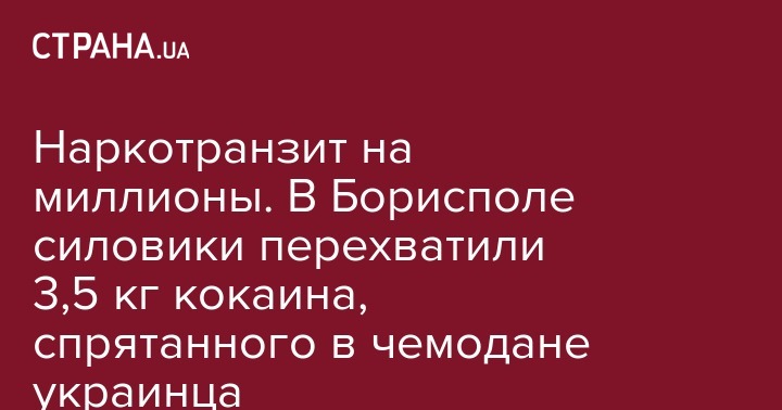 Наркотранзит на миллионы. В Борисполе силовики перехватили 3,5 кг кокаина, спрятанного в чемодане украинца