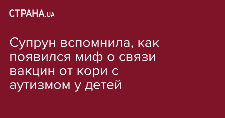 Исполняющая обязанности главы Минздрава Украины Ульяна Супрун напомнила о том, что ровно 20 лет назад в известном британском медицинском журнале Lancet вышла печально известная статья, в которой утверждалось, что вакцины КПК (против кори, паротита и краснухи) заражают детей аутизмом. Об этом она сообщила на своей странице в социальной сети Facebook.
