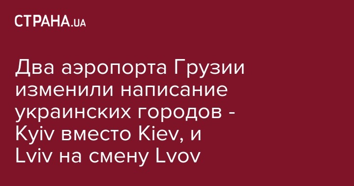 Два аэропорта Грузии изменили написание украинских городов - Kyiv вместо Kiev, и Lviv на смену Lvov