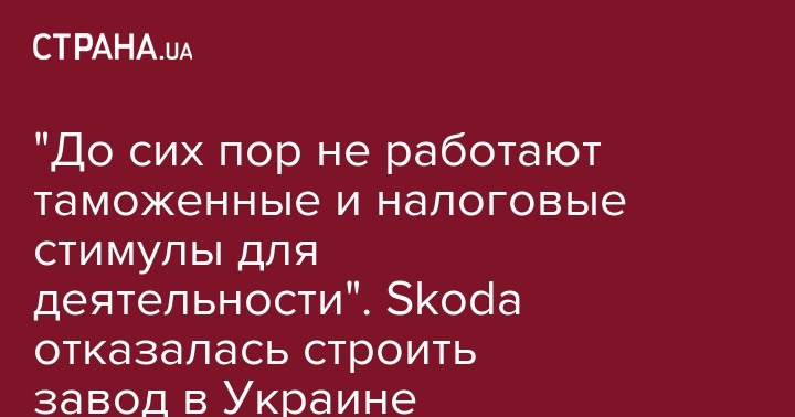 "До сих пор не работают таможенные и налоговые стимулы для деятельности". Skoda отказалась строить завод в Украине