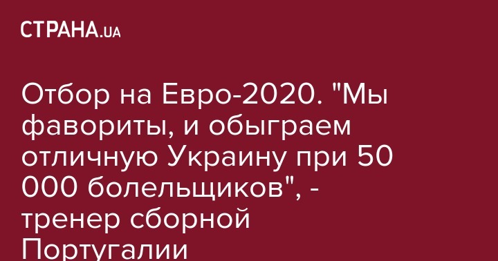 Отбор на Евро-2020. "Мы фавориты, и обыграем отличную Украину при 50 000 болельщиков", - тренер сборной Португалии
