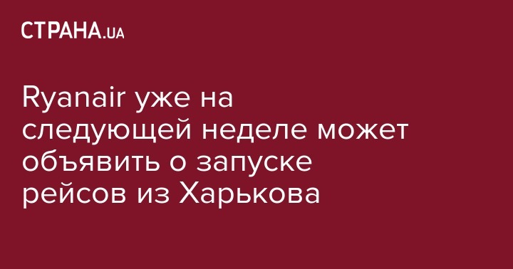 Ryanair уже на следующей неделе может объявить о запуске рейсов из Харькова