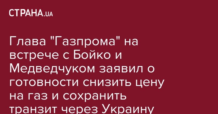 Глава "Газпрома" на встрече с Бойко и Медведчуком заявил о готовности снизить цену на газ и сохранить транзит через Украину