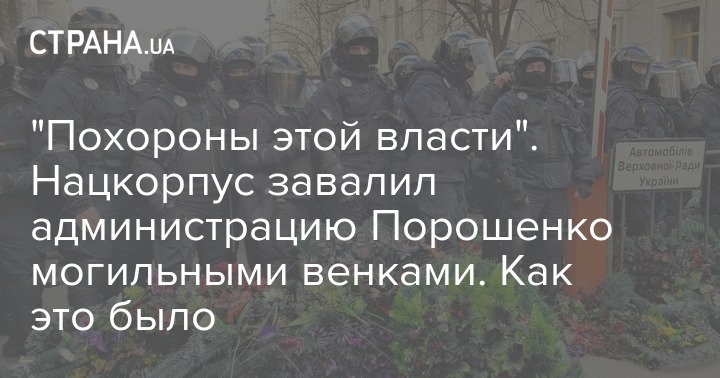 15:39 Полицию начали забрасывать похоронными венками. Так Нацкорпус устраивает "похороны власти".