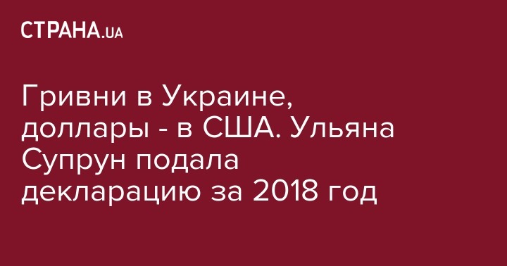 Согласно е-декларации, размещенной в Едином государственном реестре деклараций, на банковских счетах Уляны Супрун в Украине находится 46 тыс 315 гривень. У мужа, согласно опубликованным данным, 31 тыс 143 гривень.