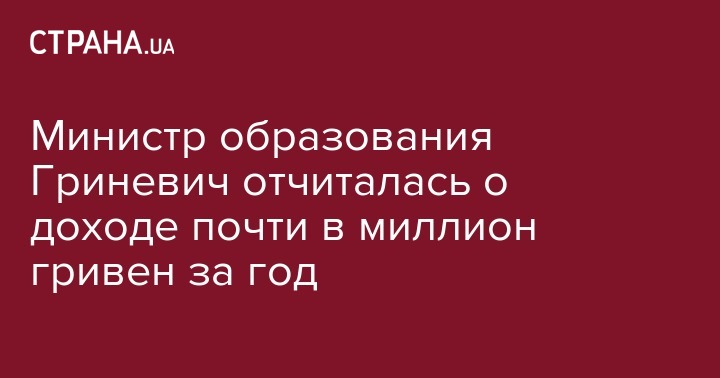 Министр образования Гриневич отчиталась о доходе почти в миллион гривен за год