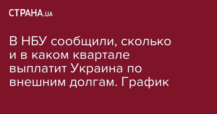В НБУ сообщили, сколько и в каком квартале выплатит Украина по внешним долгам. График