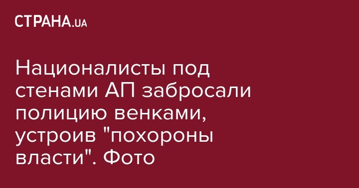 Националисты под стенами АП забросали полицию венками, устроив "похороны власти". Фото