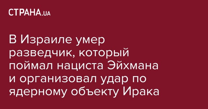 В субботу, 23 марта, бывший разведчик и политический деятель Рафи Эйтан, который отвечал за операцию по поимке нацистского преступника Адольфа Эйхмана, скончался в возрасте 92 лет. Об этом сообщает Reuters.