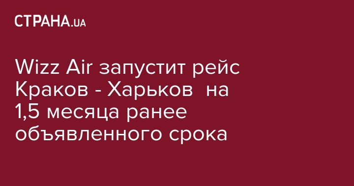Wizz Air запустит рейс Краков - Харьков на 1,5 месяца ранее объявленного срока