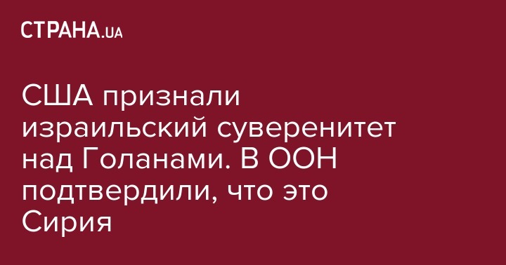 Об этом сообщает Телеграм-канал "Вестник Дамаска". В ООН эта территория считается сирийской. Пресс-секретарь Генсека ООН после подписания президентом США документа о признании Голан за Израилем заявил, что позиция организации по Голанам не изменилась.