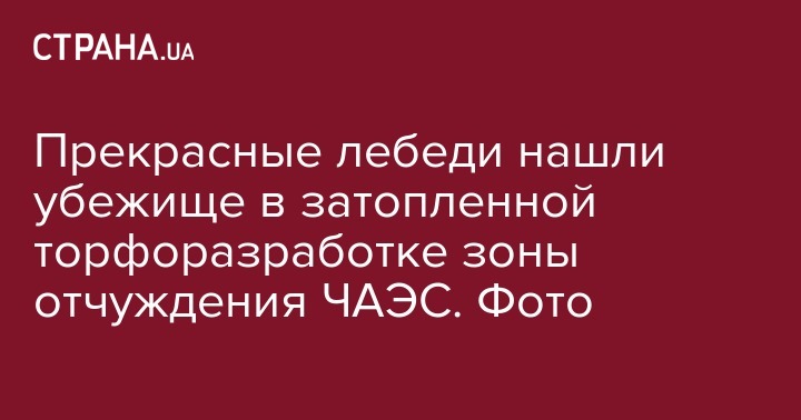 Прекрасные лебеди нашли убежище в затопленной торфоразработке зоны отчуждения ЧАЭС. Фото