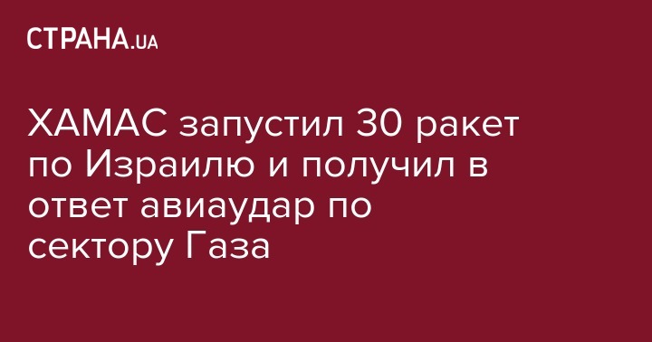 ХАМАС запустил 30 ракет по Израилю и получил в ответ авиаудар по сектору Газа