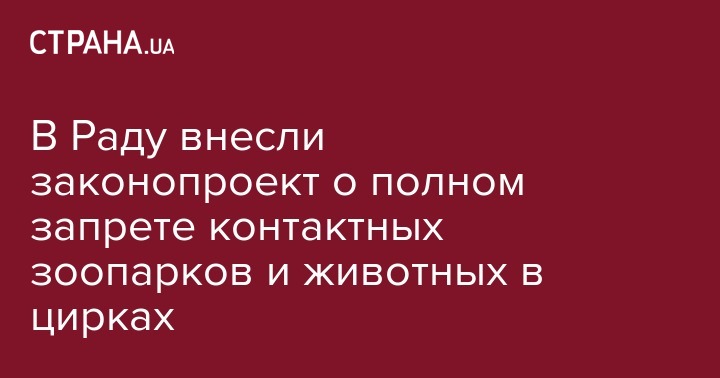 В Верховной Раде Украины зарегистрировали законопроект № 10176 о запрете контактных зоопарков и выступлений с привлечением животных в цирках, пишет 26 марта 112.ua.