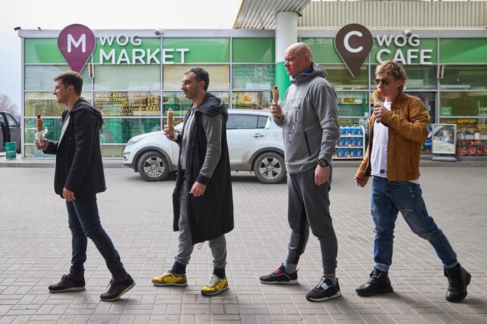 "Чтобы не быть "по приколу", решили быть серьезными, как все", - подписал он фото, где с участниками "Квартала 95" - шагает на фоне заправки с хот-догами, в стиле знаменитой фотографии The Beatles на пешеходном переходе.