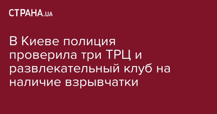 В Киеве полиция проверила три ТРЦ и развлекательный клуб на наличие взрывчатки