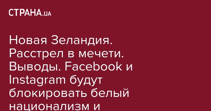 Новая Зеландия. Расстрел в мечети. Выводы. Facebook и Instagram будут блокировать белый национализм и сепаратизм