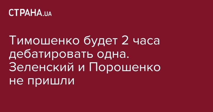 Как сообщала "Страна", сегодня, в 18.30, на UA: Перший началась главная дискуссия страны, на которую были приглашены Зеленский, Тимошенко и Порошенко. Дебаты изначально должны были продолжаться 2,5 часа в прямом эфире без перерывов на рекламу.