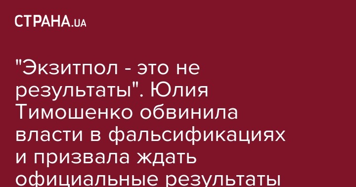 "Я призываю не воспринимать экзитполы… Все эти продажные экзитполы были направлены на то, чтобы дезорганизовать нашу команду во время выборов", - заявила она в эфире телеканала ICTV.