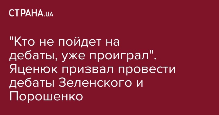 "Публичность - это часть политики. Это как бой на ринге - кто сильнее. И тот, кто не пойдет на дебаты, уже проиграл", - сказал Яценюк.