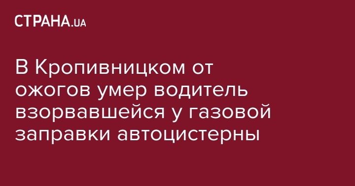 В Кропивницком от полученных травм скончался 58-летний водитель газовой автоцистерны, которая взорвалась возле газовой заправки 27 марта. Об этом заявила заведующая ожоговым отделением областной больницы Наталья Корчака, сообщает канал "Кировоград" на своей странице в соцсети.