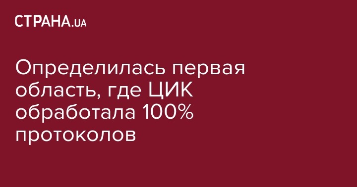 Полтавская область стала первой, где Центральная избирательная комиссия обработала 100% протоколов. Об этом говорится на сайте ЦИК.