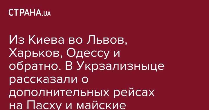 На Пасху и майские праздники, в честь которых украинцев ожидает сразу пять выходных подряд, Укрзализныця назначила 41 дополнительный железнодородный рейс. Об этом сообщает пресс-служба компании