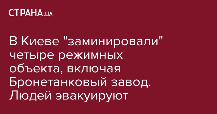 В Киеве из-за анонимных сообщений о минировании эвакуируют людей из зданий Бронетанкового завода, Конструкторского бюро "Артиллерийское вооружение", завода "Маяк" и Высшего совета правосудия. Об этом говорится на сайте полиции города.