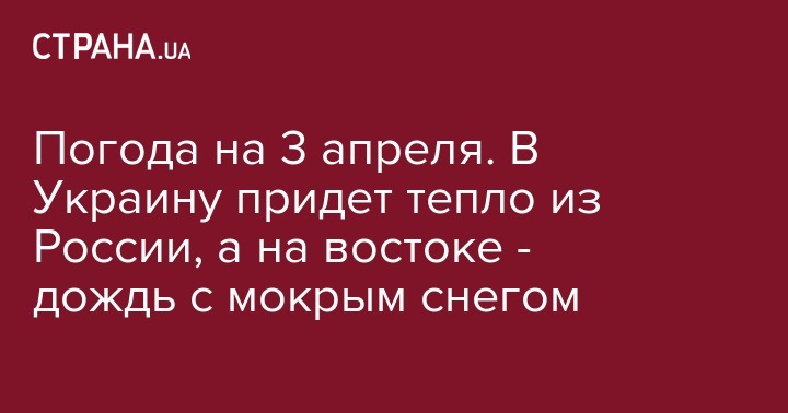 Погода на 3 апреля. В Украину придет тепло из России, а на востоке - дождь с мокрым снегом
