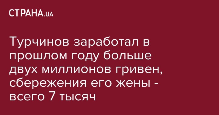 Турчинов заработал в прошлом году больше двух миллионов гривен, сбережения его жены - всего 7 тысяч