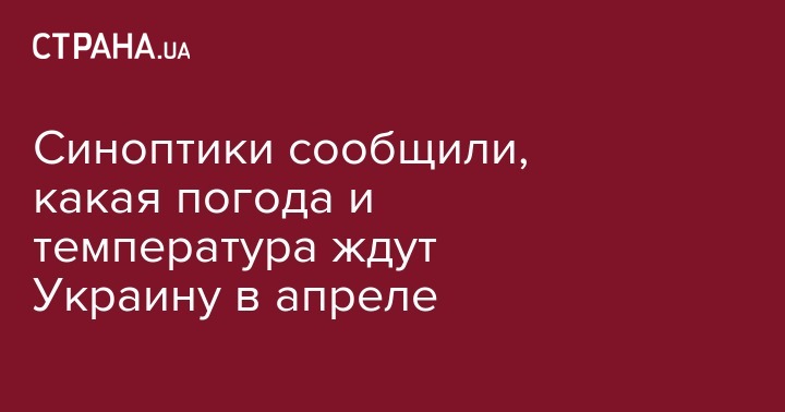 В первой декаде месяца в Украине завершается переход средней суточной температуры воздуха через +5 ° в сторону повышения; переход через + 10 ° ожидается во второй половине апреля, в Карпатах и горах Крыма - в мае.  Средняя месячная температура воздуха ожидается в диапазоне 7-11 °, в горных районах 2-6º тепла.
