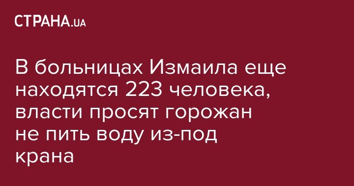 В Измаиле, который страдает от вспышки кишечной инфекции, по состоянию на шесть вечера с симптомами кишечной инфекции в больницах пребывает 223 человека, сообщил на своей странице в Facebook мэр города Андрей Абрамченко. Половина из них - дети.