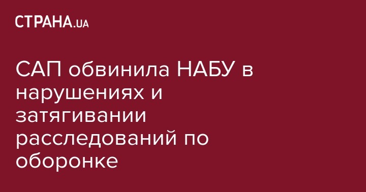 Специализированная антикоррупционная прокуратура (САП) заявляет, что Национальное антикоррупционное бюро (НАБУ), расследуя факты хищения в оборонке, неоднократно нарушало закон. Об этом сообщает пресс-служба САП на странице в Facebook.