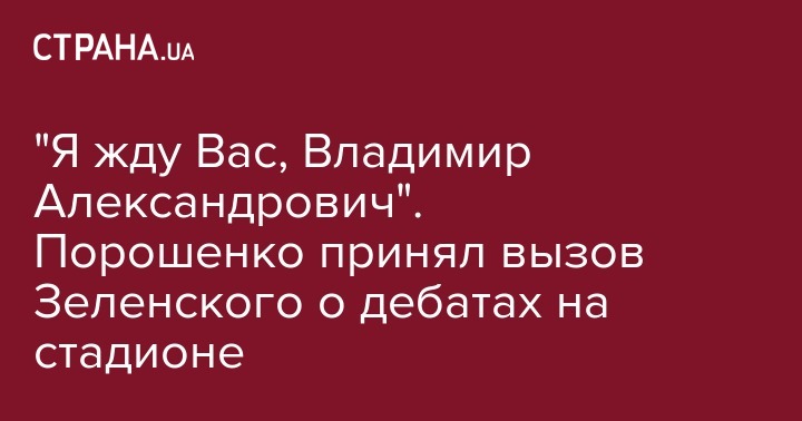 "Правила дебатов прописаны в законе о выборах президента, почитайте пожалуйста. Они могут происходить на базе Общественного телевидения с трансляцией по всем телеканалам для десятков миллионов людей. Но стадион, так стадион. Я жду Вас, Владимир Александрович", - написал Петр Порошенко.