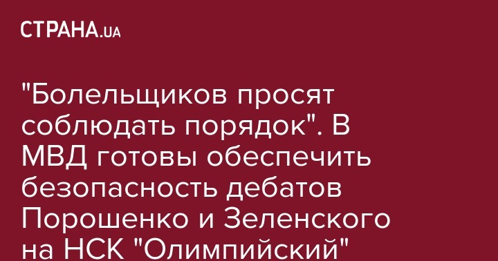 "Болельщиков просят соблюдать порядок". В МВД готовы обеспечить безопасность дебатов Порошенко и Зеленского на НСК "Олимпийский"