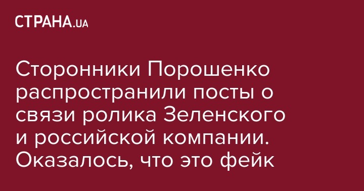 Сторонники Порошенко распространили посты о связи ролика Зеленского и российской компании. Оказалось, что это фейк