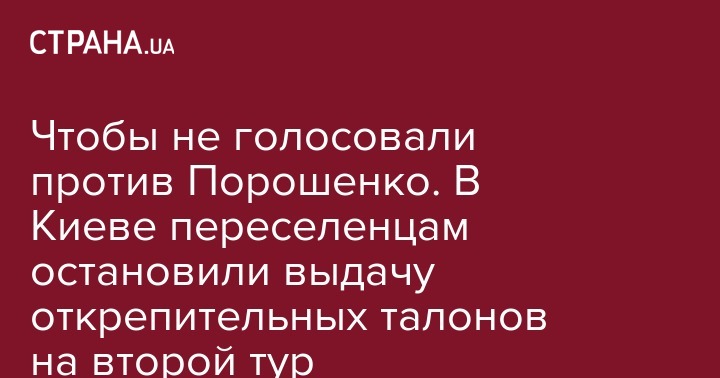 Чтобы не голосовали против Порошенко. В Киеве переселенцам остановили выдачу открепительных талонов на второй тур