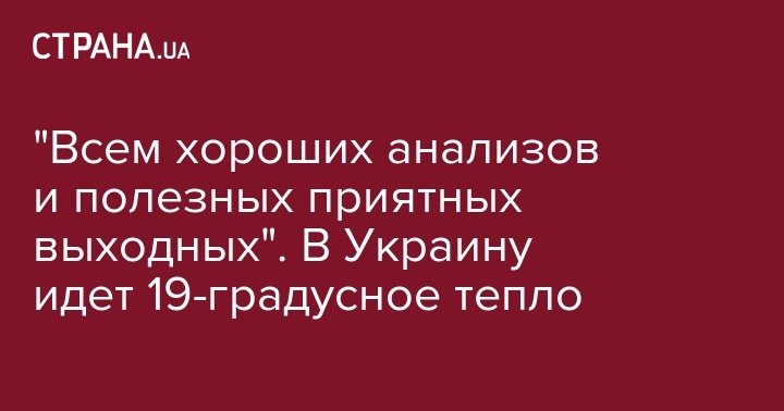 "Всем хороших анализов и полезных приятных выходных". В Украину идет 19-градусное тепло