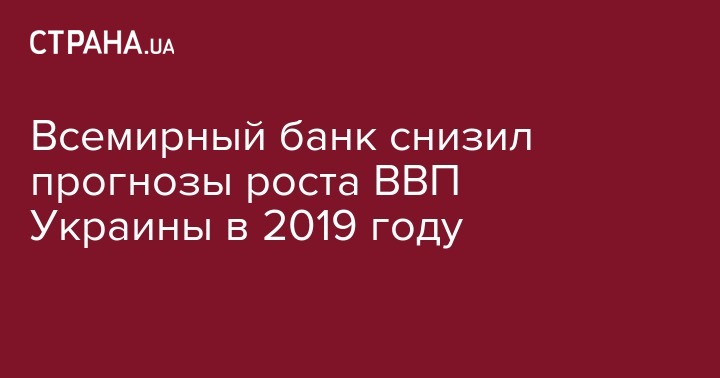 Во Всемирном банке ухудшили прогнозы роста валового внутреннего продукта Украины в этом году до 2,7% с 2,9%. Об этом сообщили в обзоре ВБ "Europe and Central Asia Economic Update, Spring 2019: Financial Inclusion".