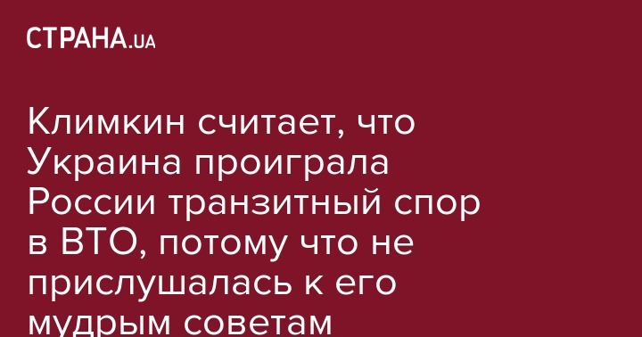 Министр иностранных дел Украины Павел Климкин считает, что Украина проиграла России транзитный спор в ВТО, потому что не прислушалась изначально к его стратегии и тактике. Об этом Климкин написал в Twitter.